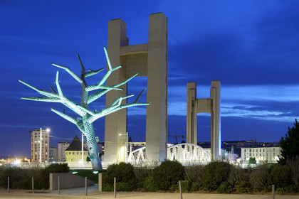 France, Finistere (29), Brest, Sculpture "líarbre empathique", oeuvre de líarchitecte catalan Ècologiste Enric Ruiz Geli et le Pont de Recouvrance