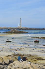 France, Finistère (29), Plouguerneau, l'île Vierge dans l'archipel de Lilia, le phare de l'île Vierge, le plus haut phare d'Europe d'une hauteur de 82,5 mètres