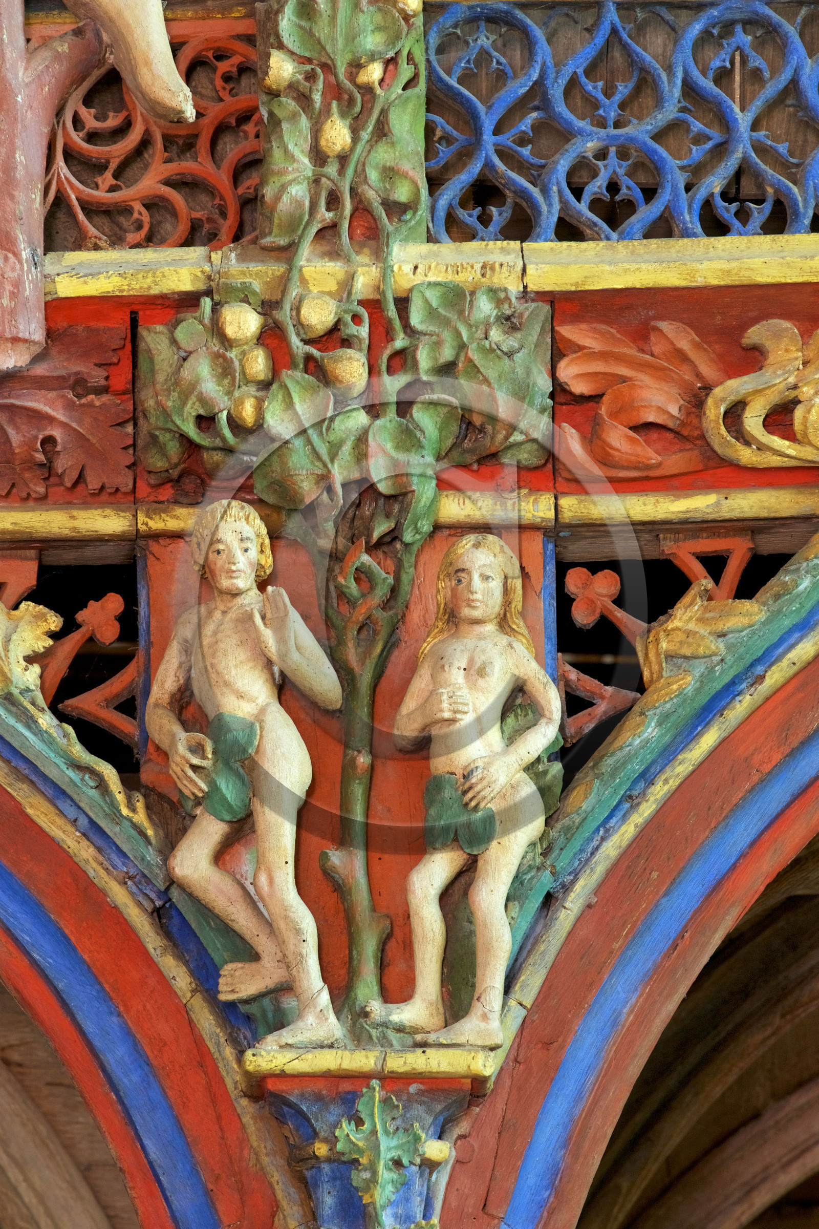 | Description | France, Morbihan (56), Ètape sur le chemin de Saint-Jacques de Compostelle, Le FaouÎt, chapelle Saint-Fiacre du XVe siËcle, le jubÈ polychrome en bois considÈrÈ comme l'un des plus beaux de France |
