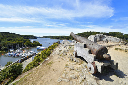 France, Morbihan (56), La Roche-Bernard, le site du Rocher, un des canons du vaisseau de guerre franÁais Le Juste coulÈ durant la bataille des Cardinaux en 1759