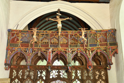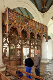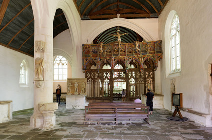 France, Morbihan (56), Ètape sur le chemin de Saint-Jacques de Compostelle, Le FaouÎt, chapelle Saint-Fiacre du XVe siËcle, le jubÈ polychrome en bois considÈrÈ comme l'un des plus beaux de France